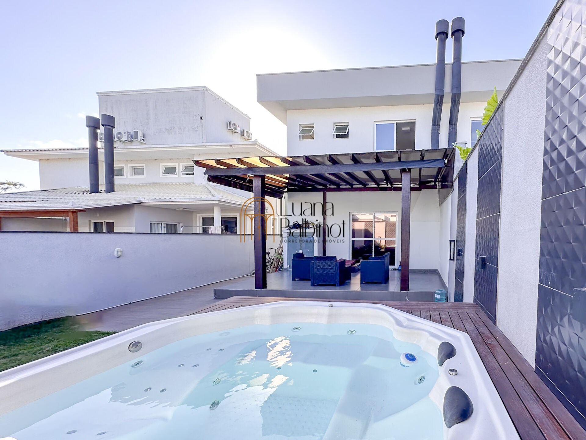 A propriedade conta com uma posição solar privilegiada, aproveitando o sol da manhã e da tarde. Além disso, possui uma relaxante hidromassagem, perfeita para momentos de descanso e bem-estar.