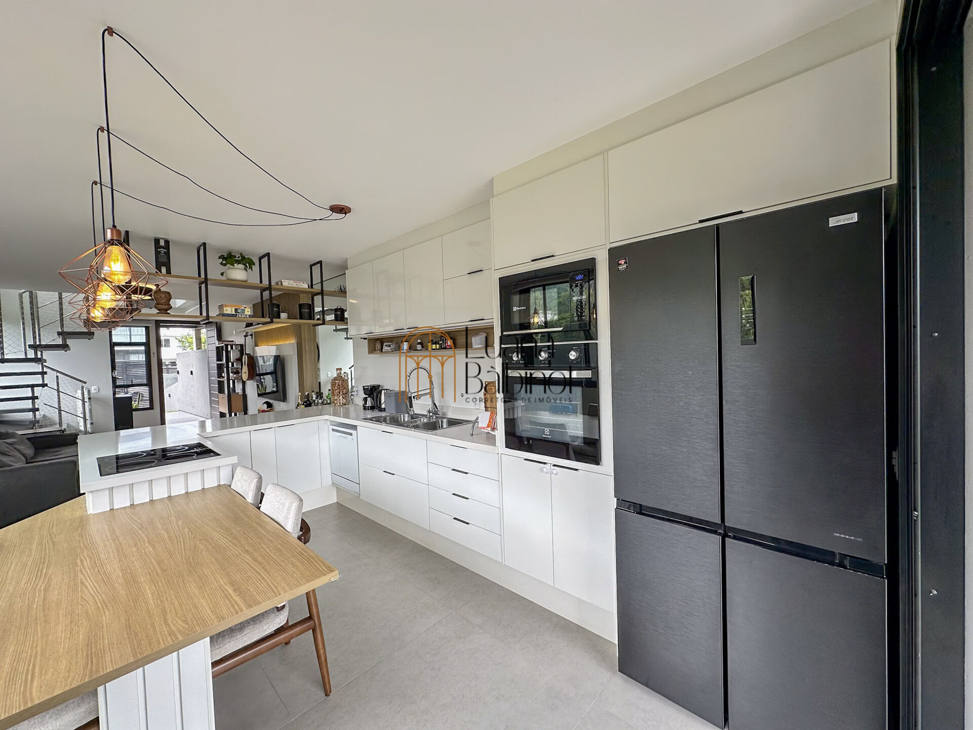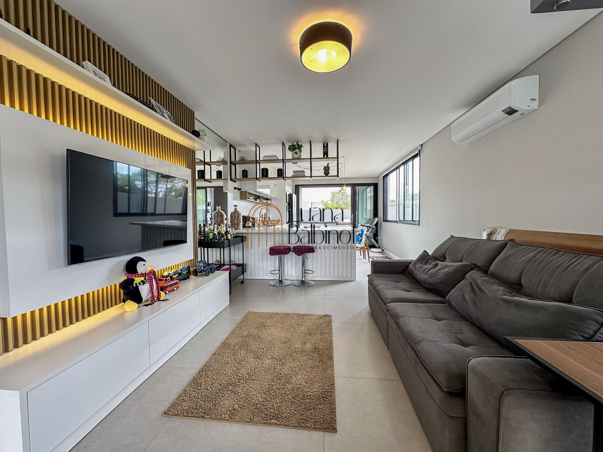 O conceito aberto integra harmoniosamente a sala de estar, a sala de jantar e a cozinha, criando um ambiente amplo e arejado, ideal para reunir família e amigos. A decoração moderna, com móveis sofisticados e excelente iluminação natural, valoriza cada detalhe desse espaço acolhedor e funcional.